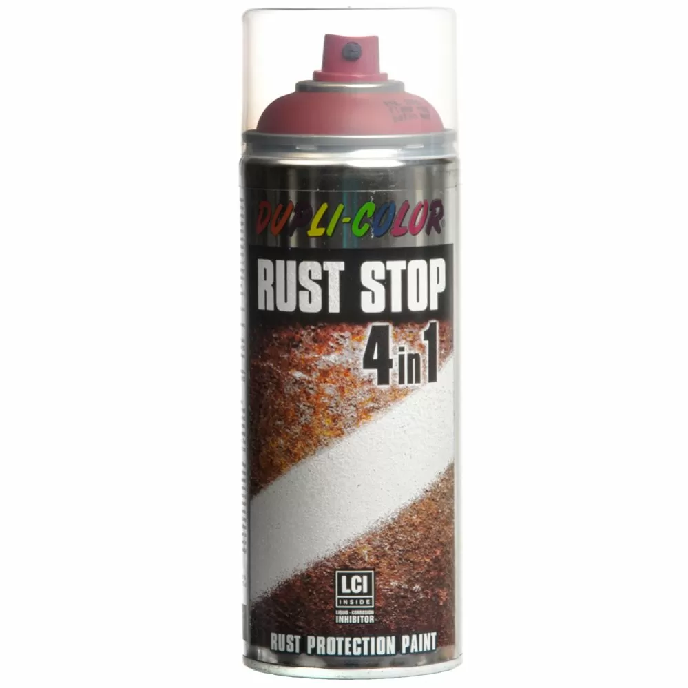 RUST STOP Краска аэрозольная, эмаль по ржавчине 4 в 1 темно-красная (RAL 3000) 0,4л Dupli Color 179303
