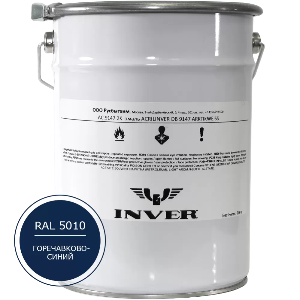 Синтетическая антикоррозийная краска INVER RAL 5010, матовая, грунт-эмаль, воздушной сушки 25 кг.