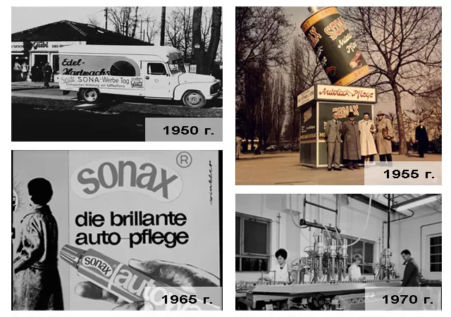 Автомобильному полиролю решено было дать другое название. Так Sona превращается в SONAX. Буква X - обозначает воск, обязательный компонент, который начинают использовать при производстве полиролей.